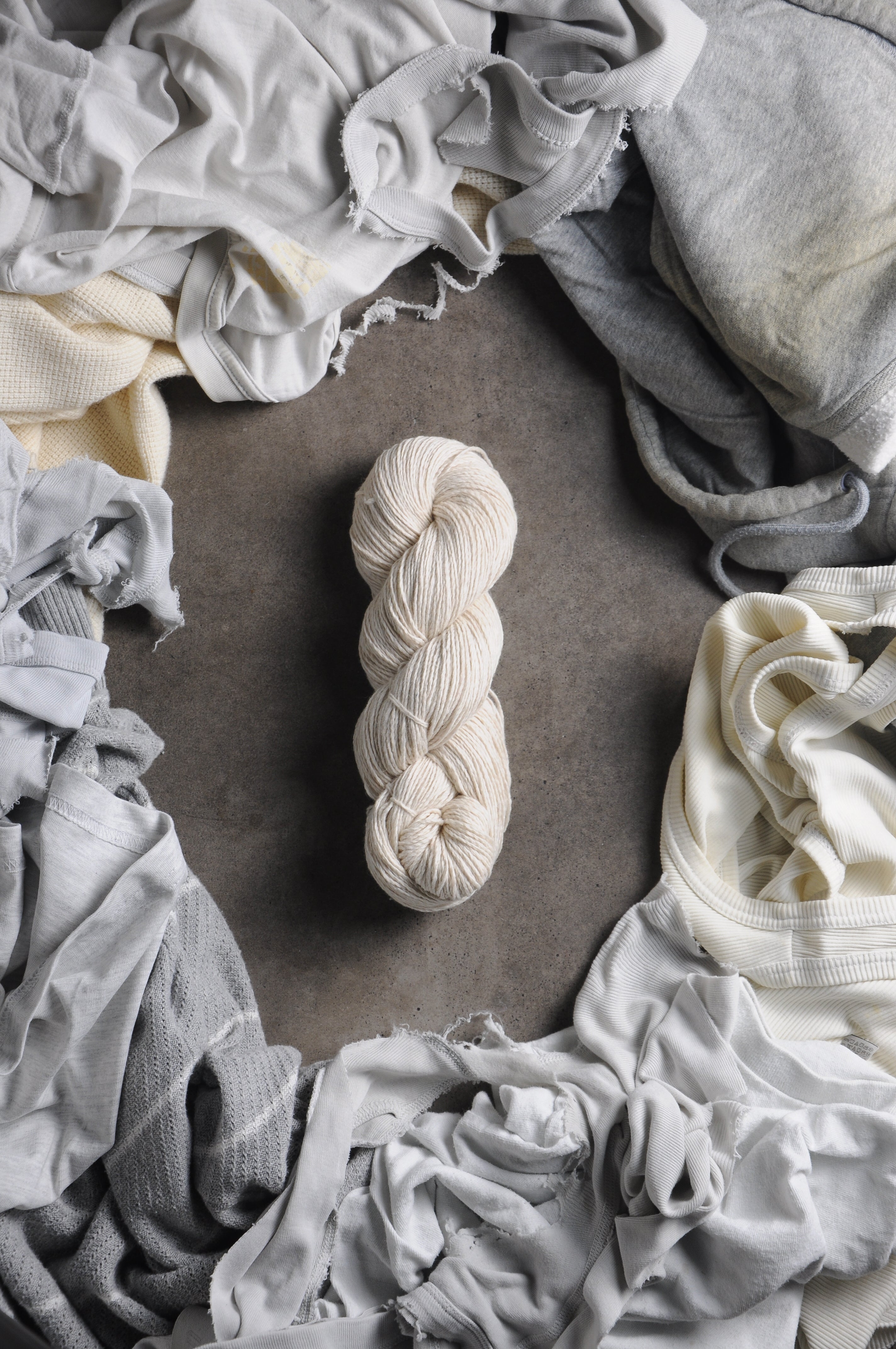 A 5Ply cotton and wool blend, recycled from old clothes and homewares supplied by Salvos Stores in St Peters, Sydney