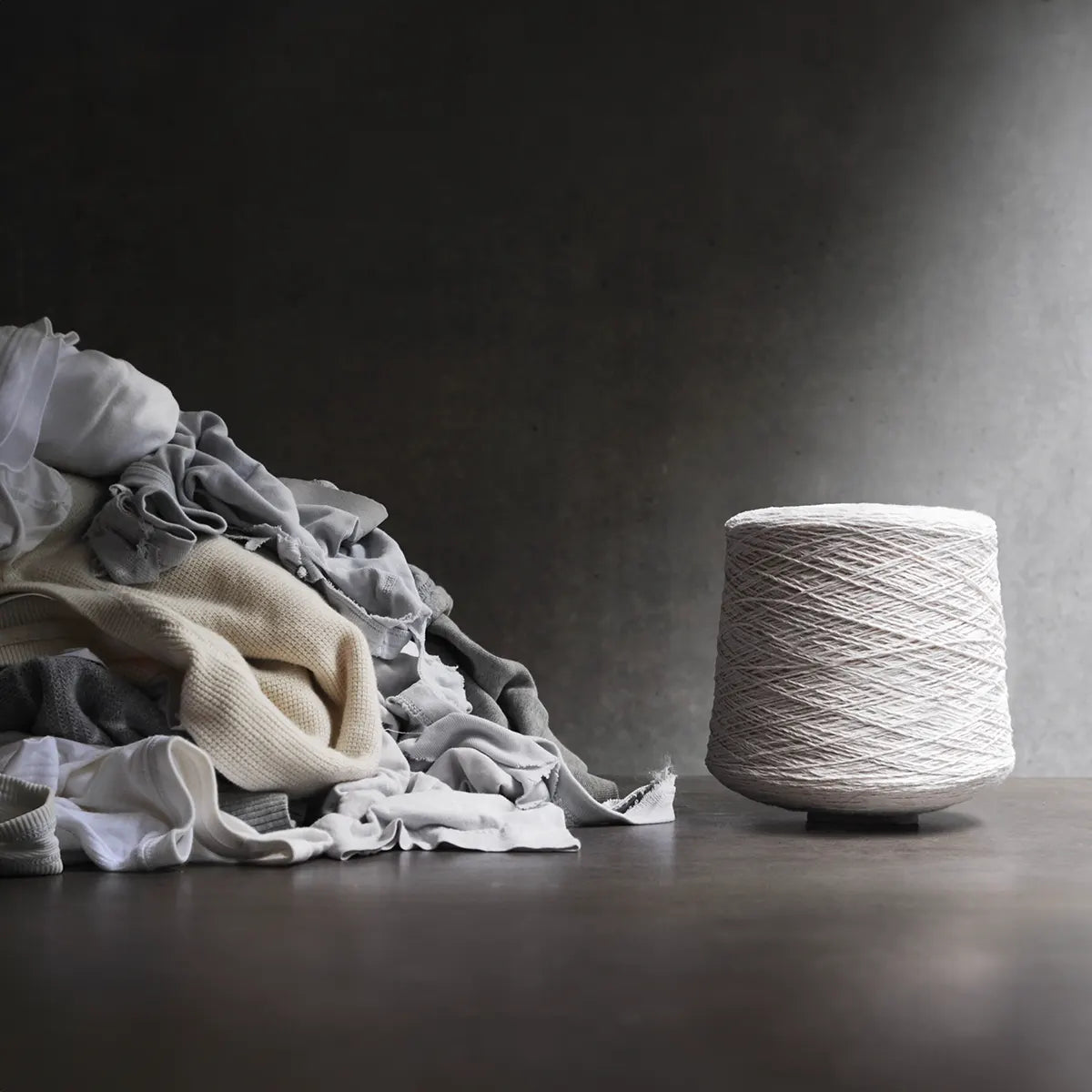 A 5Ply cotton and wool blend, recycled from unwanted clothing and homewares supplied by Salvos Stores.